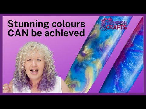 These stunning, twist-action pens are made with two-part epoxy resin and turned on a lathe.