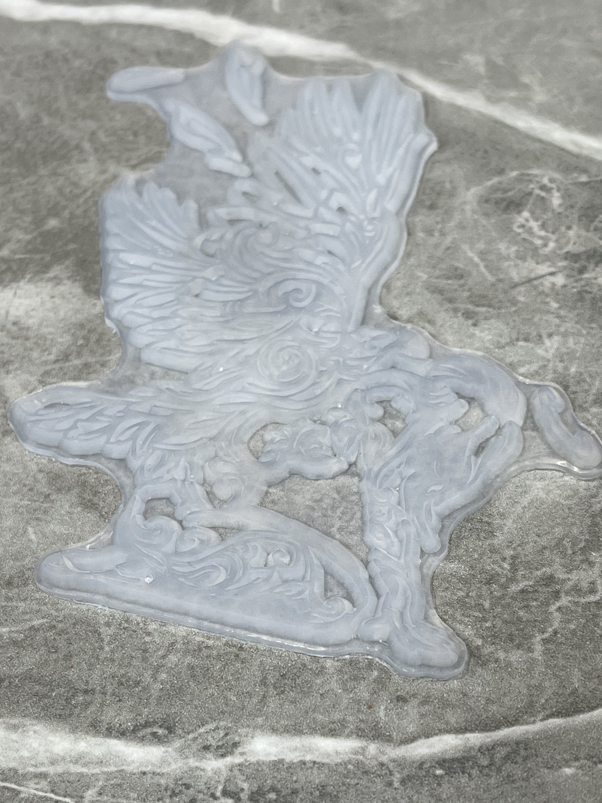Handmade silicone inlays with animal nature design and intricate details.