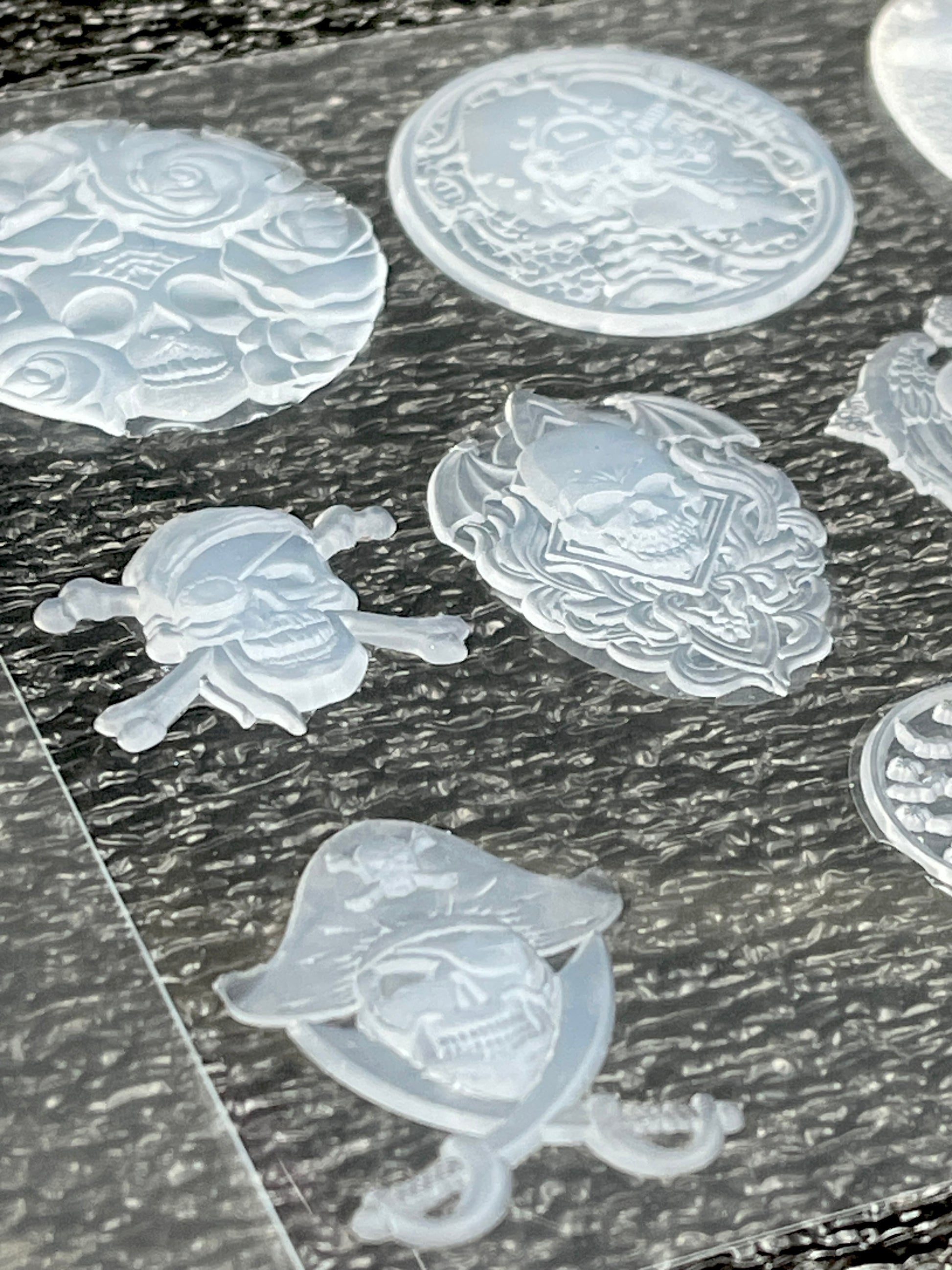 A Collection of 10 'Bones', tiny silicone inlays with and without borders.