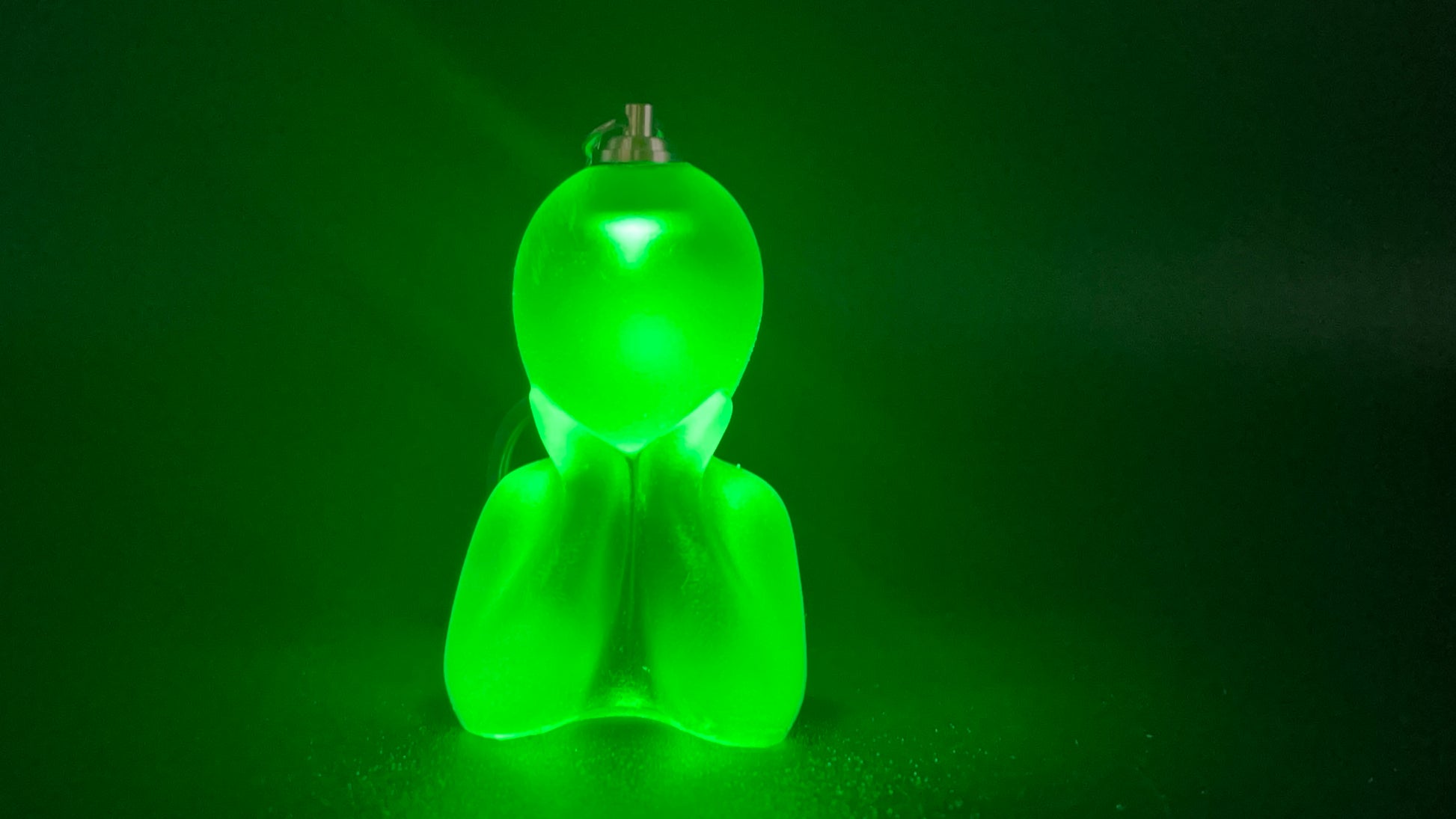 Handmade epoxy resin contemplation figure with light and keyring for any bag or keys.