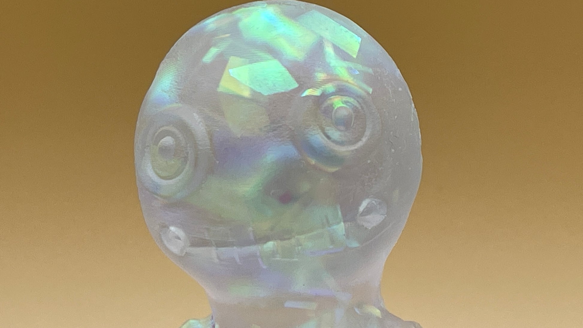 Made from 2-part epoxy resin and tinsel, this doll has a frosted glass appearance.