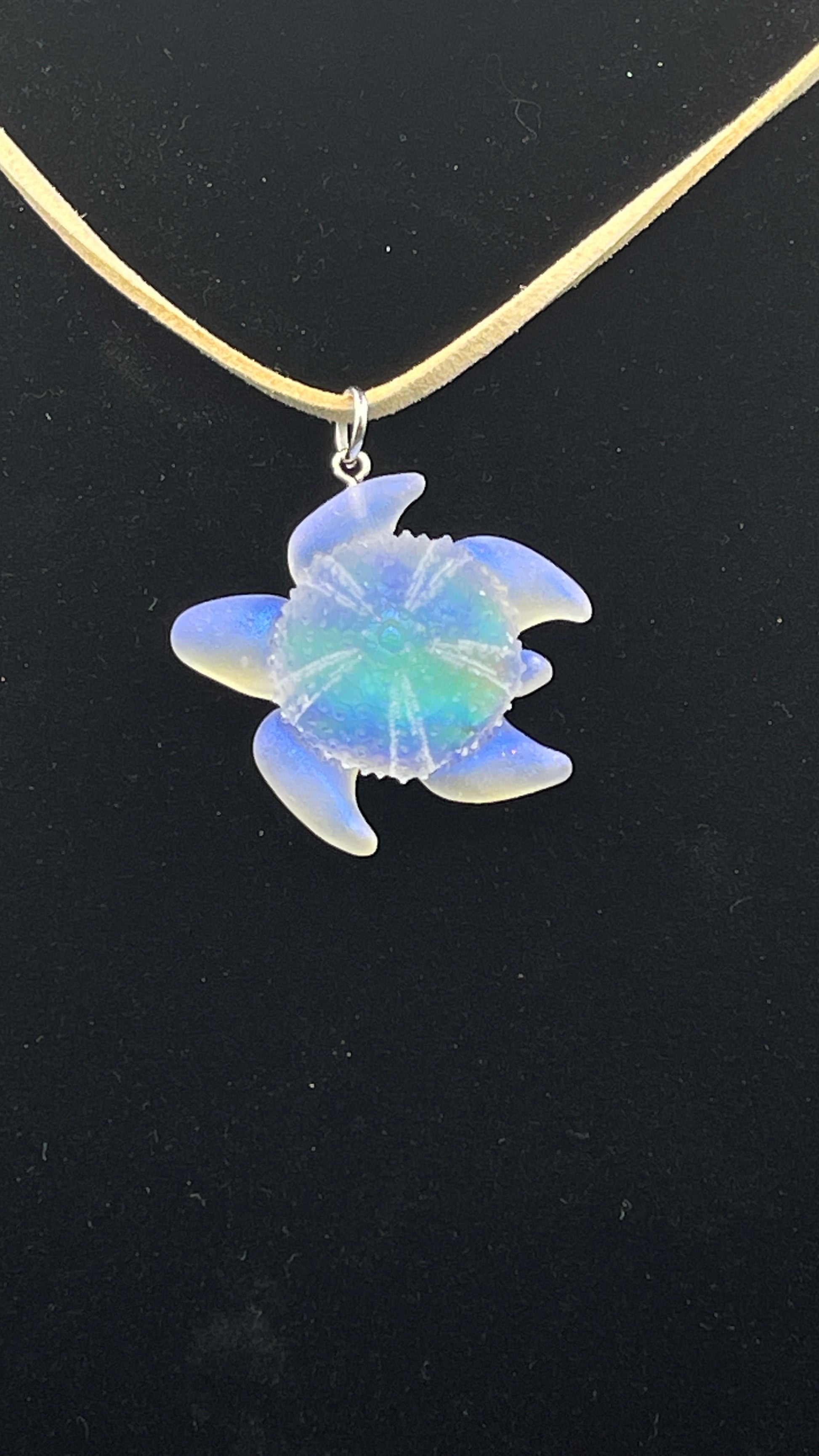 This one of a kind pendant made from UV resin is spectacular in appearance and the colours change within the shell as the light changes.
