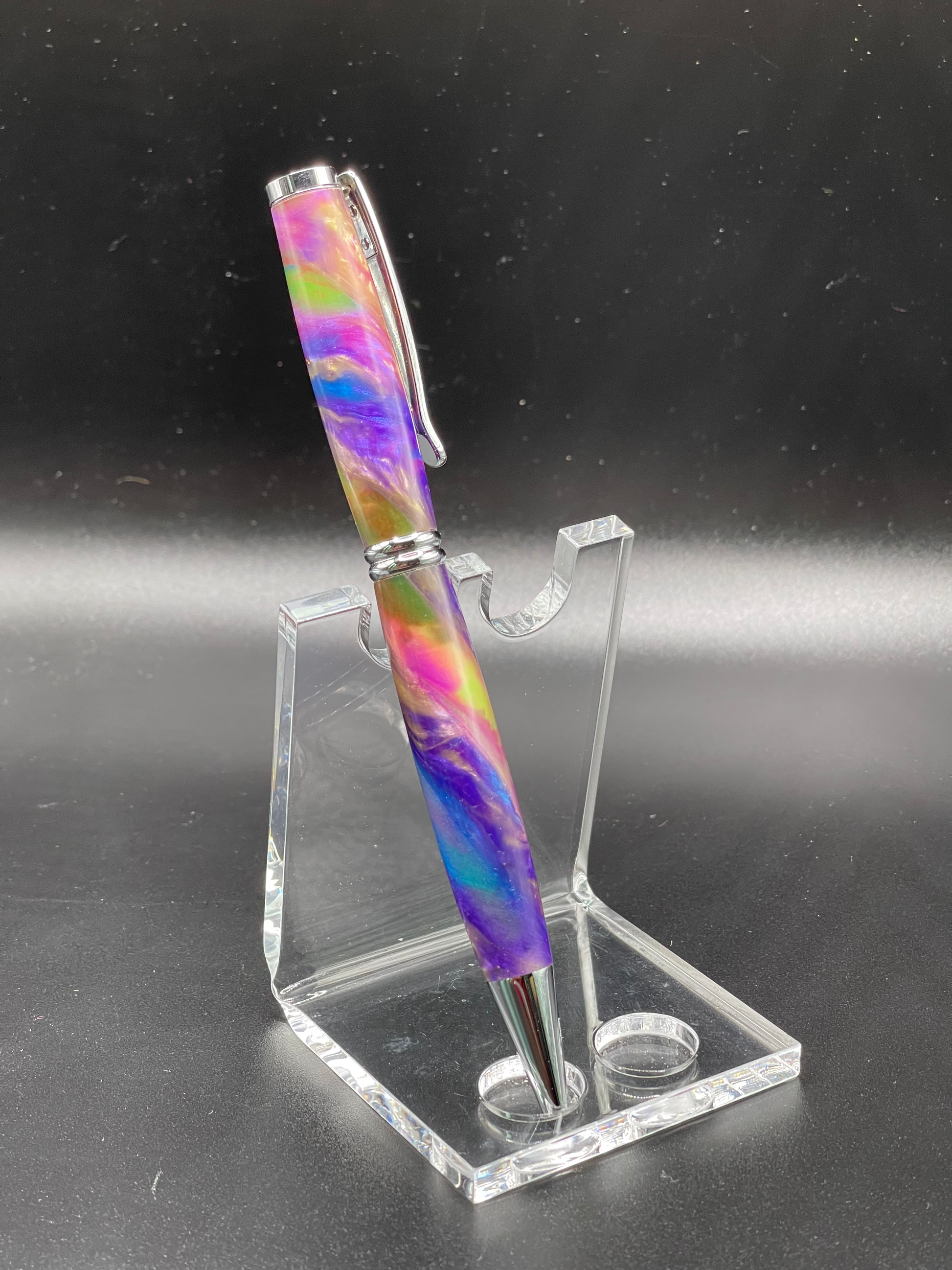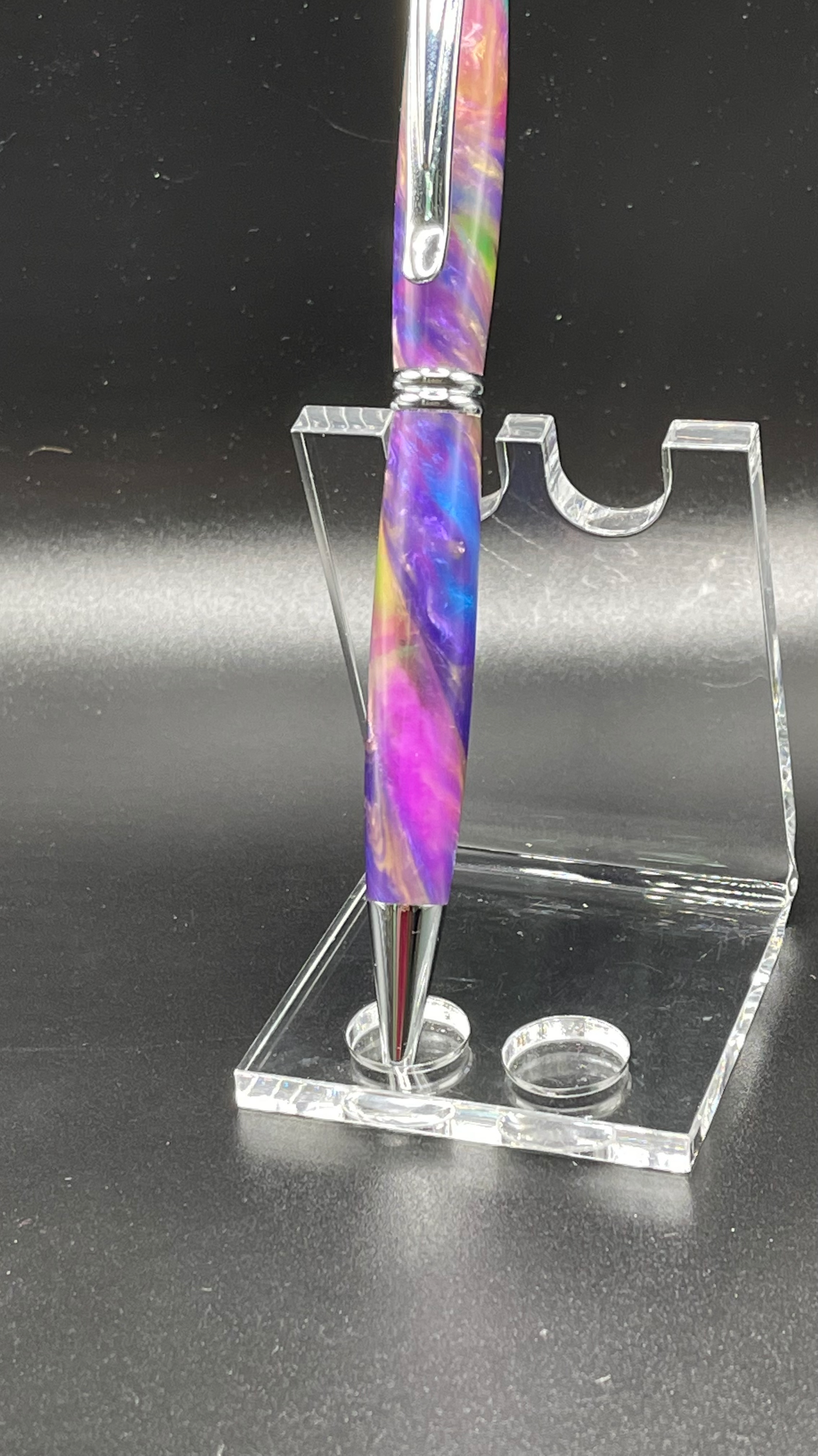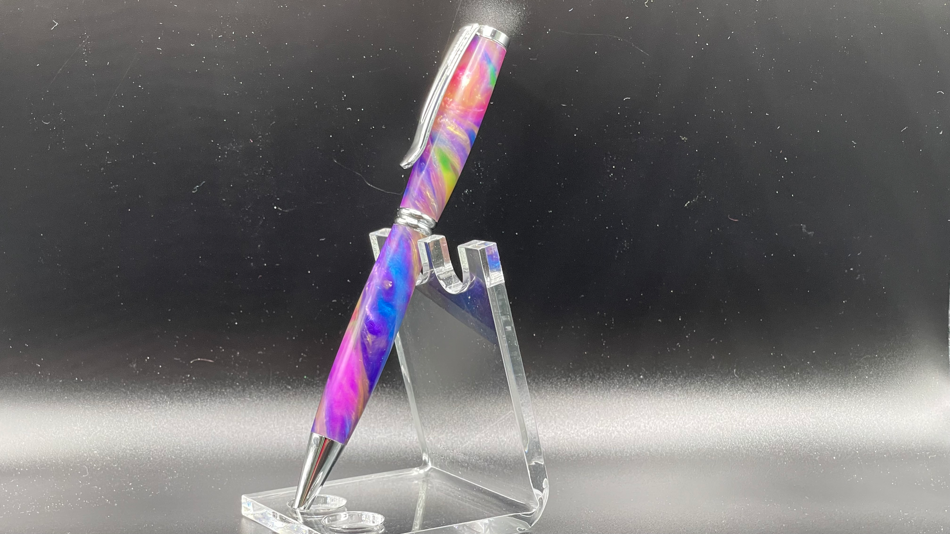 The colours include glow in the dark pigments and are mostly blue, purple, pink with small hints of green and gold. It has a beautiful shimmer to it.