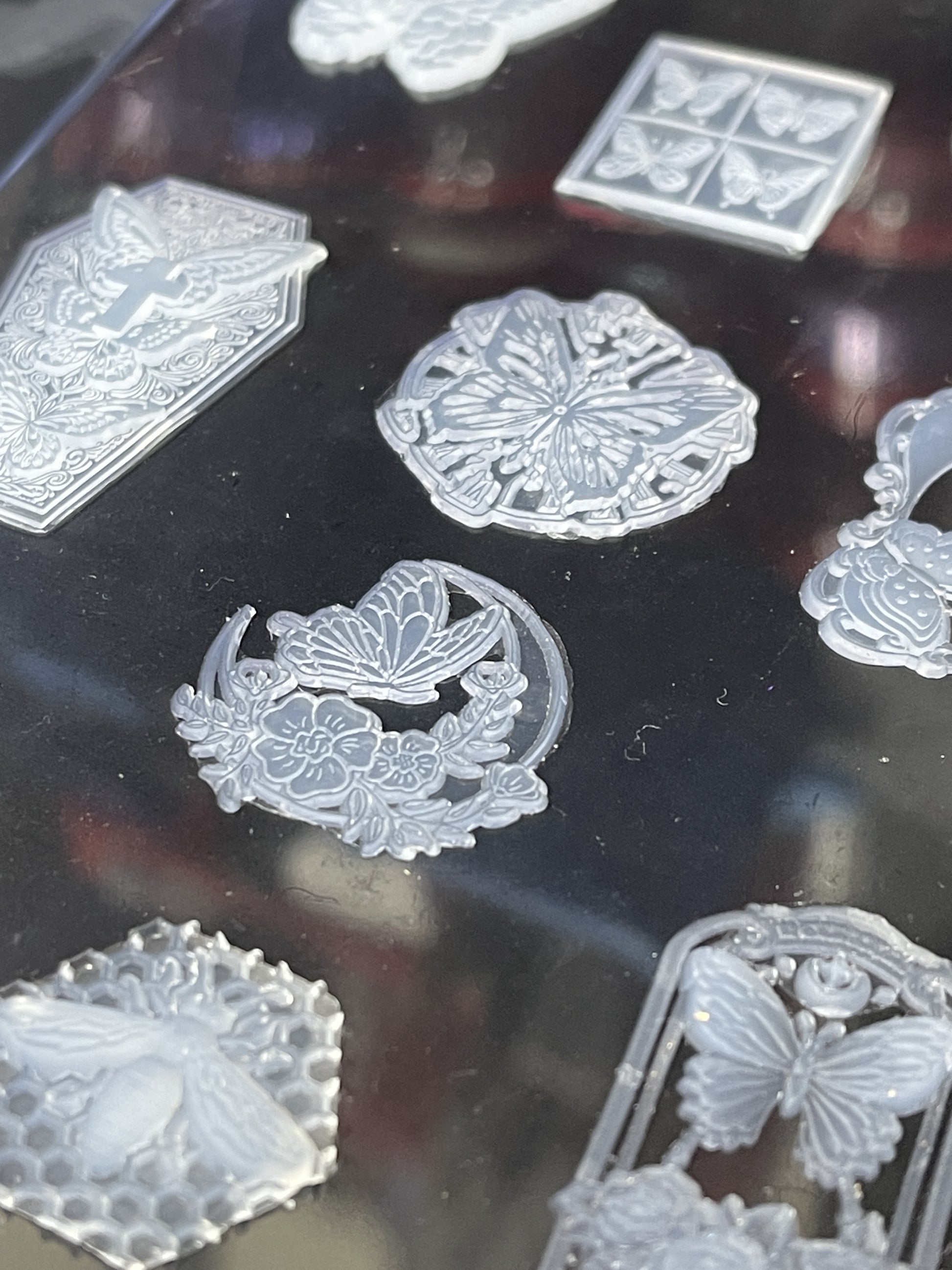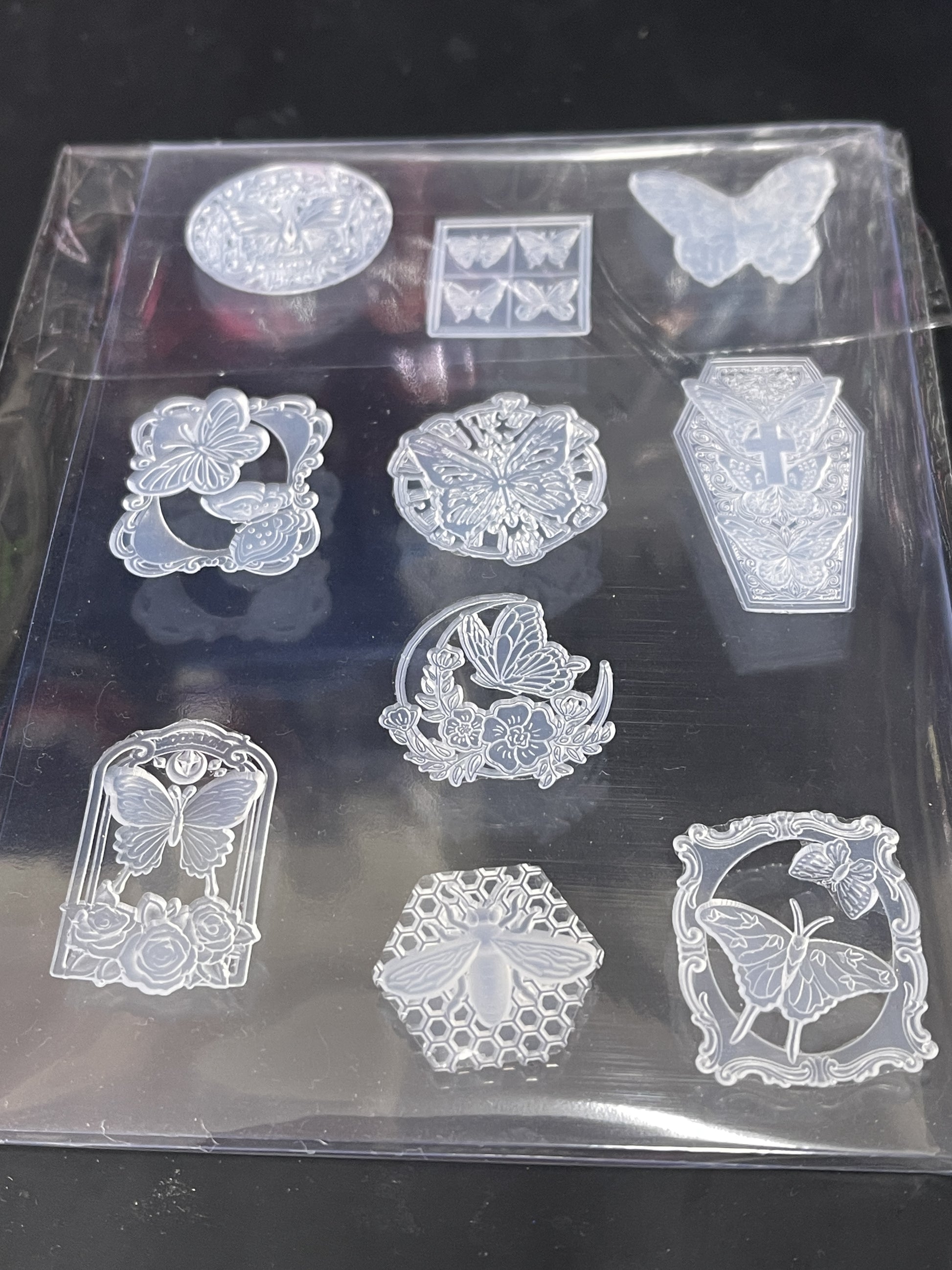 A selection of 10 Winged butterflies and bee tiny silicone inlays without borders.